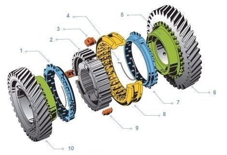 Все современные механические коробки передач, а также роботизированные коробки передач являются синхронизированными. В таких коробках для того, чтобы включить передачу, производится выравнивание частоты вращения вала и шестерни. Синхронизацию обеспечивает одноименное устройство – синхронизатор. Помимо плавного переключения передач синхронизатор снижает износ механического соединения, шум при переключении и, тем самым, увеличивает срок службы коробки передач.